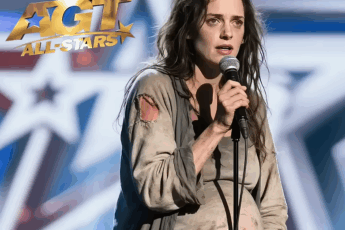 It looked like a mistake. A barefoot woman stepped onto the stage, clothes ripped, face tired, arms wrapped